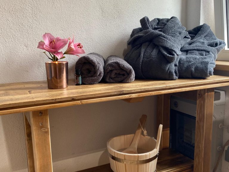 Wann hast Du schon mal eine Sauna als Paar alleine? Kannst Deinen 1. Kaffee im Bett oder auf der Terrasse genießen und zwar einfach so wie Du gerade aufgestanden bist. Und das nicht in Deiner Alltags-umgebung und auch nicht mit vielen anderen Menschen in einem Hotel. Auch hier kannst Du uns vorher alles mitteilen, was Du gerne haben möchtest oder womit Du deine Liebste/Liebsten überraschen möchtest und dann einfach anreisen. Das ist herrlich- glaub`s mir, wir haben`s ausprobiert!